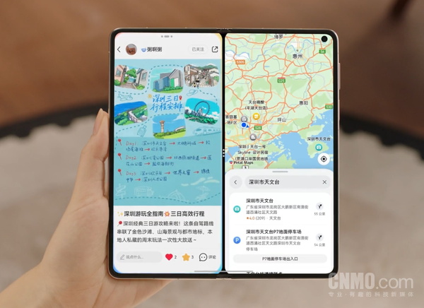可靠的硬件之外,系统与生态才是折叠屏“越用越好用”的关键。通过鸿蒙操作系统 6,华为折叠屏实现了从“大屏”到“好用”的跨越:应用深度适配大屏生态,可智能调节窗口布局;AI功能围绕大屏优化,搭配平行视界、智慧分屏、全景多窗等,充分发挥大屏显示优势。